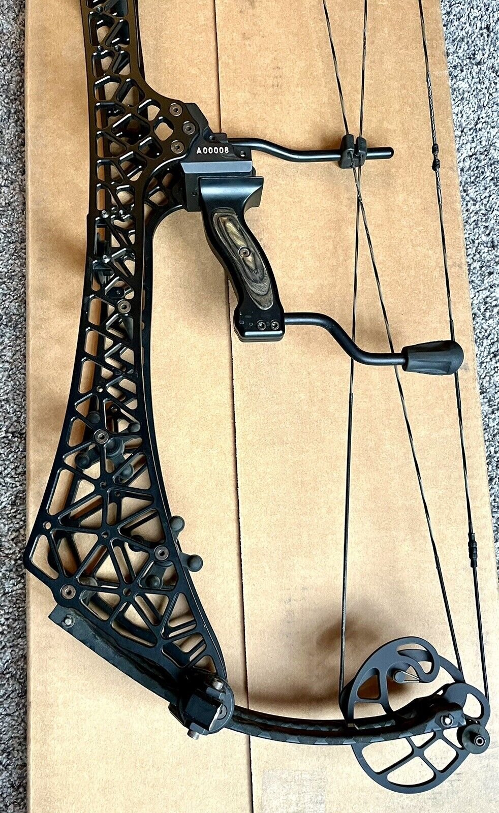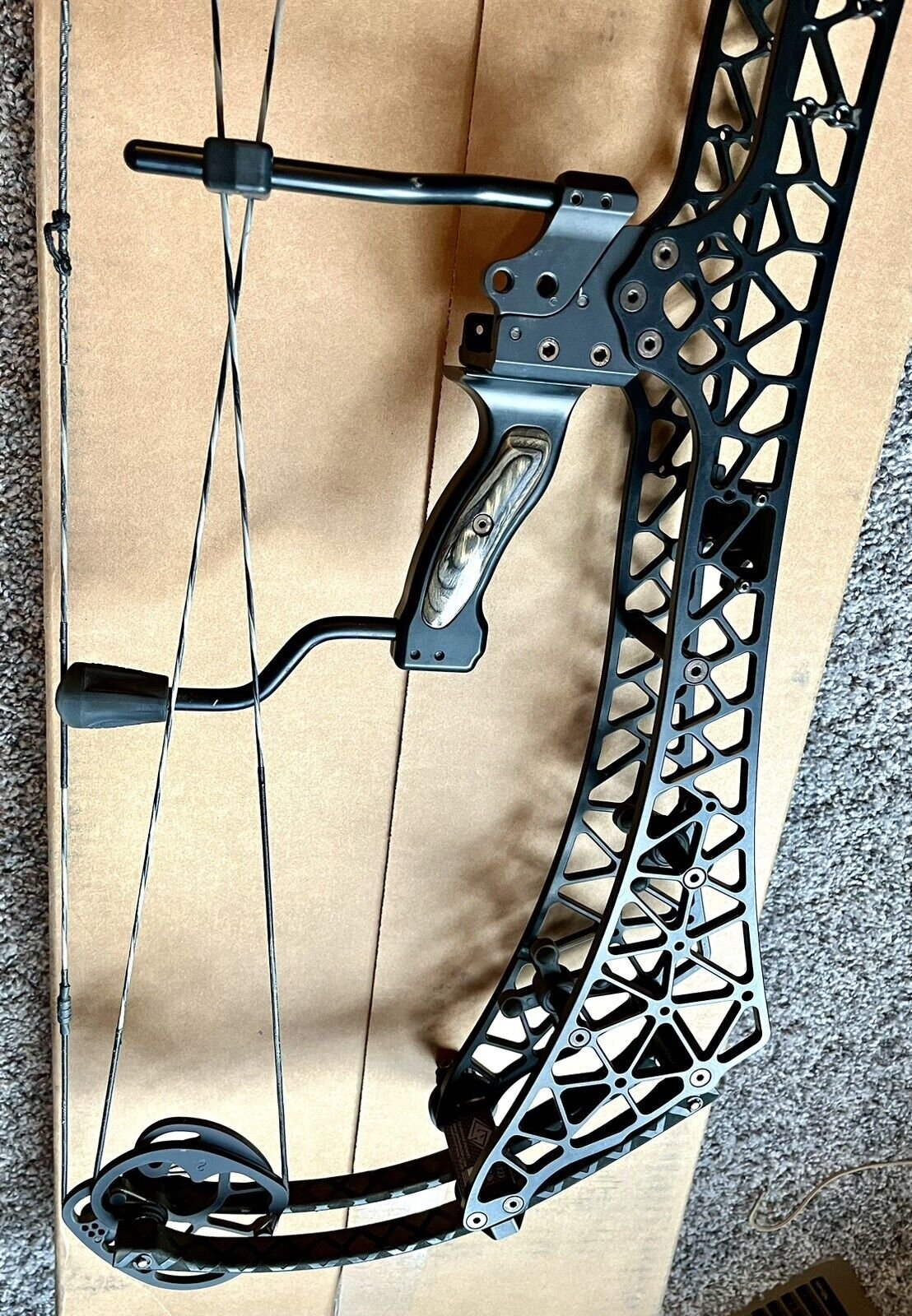 Gearhead Archery T33 compound bow. There are a few blemishes in the finish; overall in great working condition. Very unique dual riser shoot through technology & adjustable grip. Dual Riser Shoot Through Compact & FAST