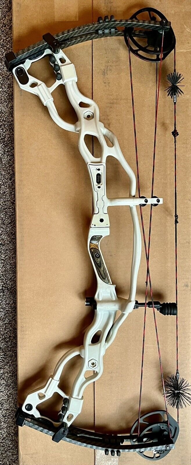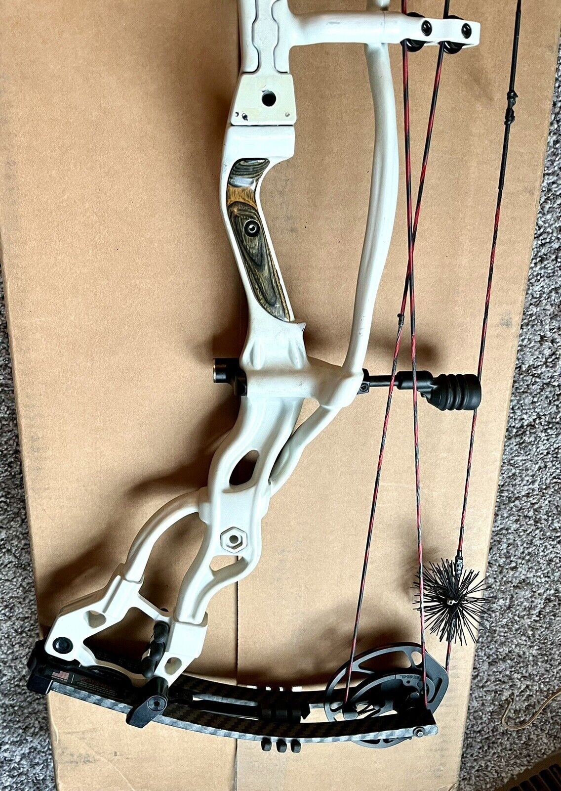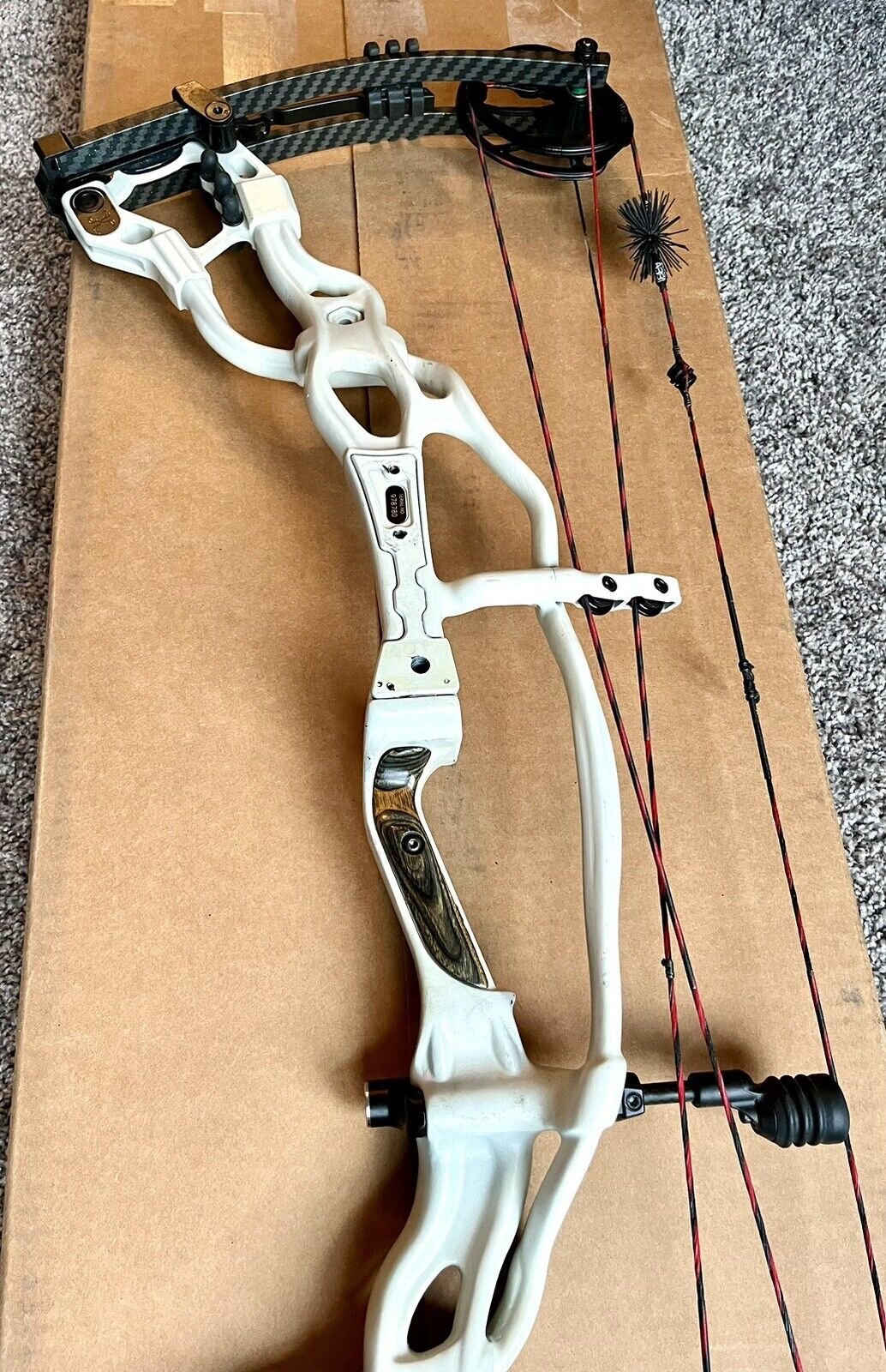 LH Hoyt Carbon Spyder Turbo compound bow. There are a few blemishes in the finish, around the riser area, overall in good working mechanical condition. Ultralight, compact and fast!!