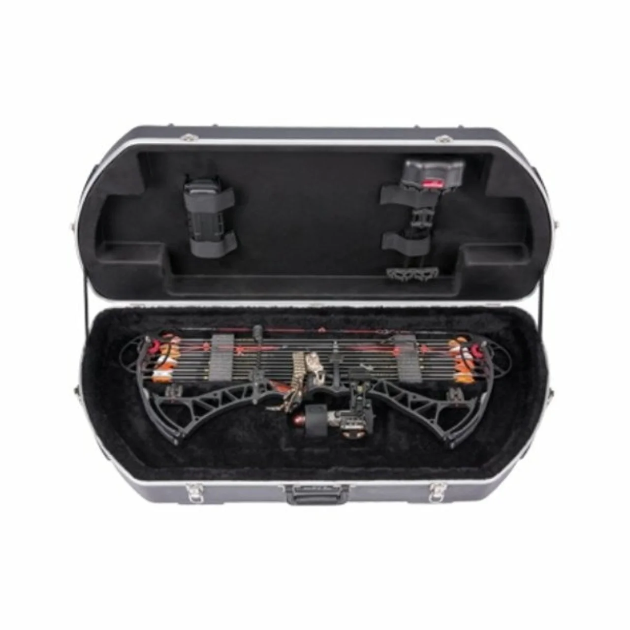 The Hunter XL Series 2SKB-4120 Case is the big brother to the popular smaller Hunter Series Bow Case. Accommodates the new wider style bows with the quiver attached and features plush lined EPS interior inserts to provide maximum impact resistance and a water jet cut foam arrow system that holds up to a dozen arrows.